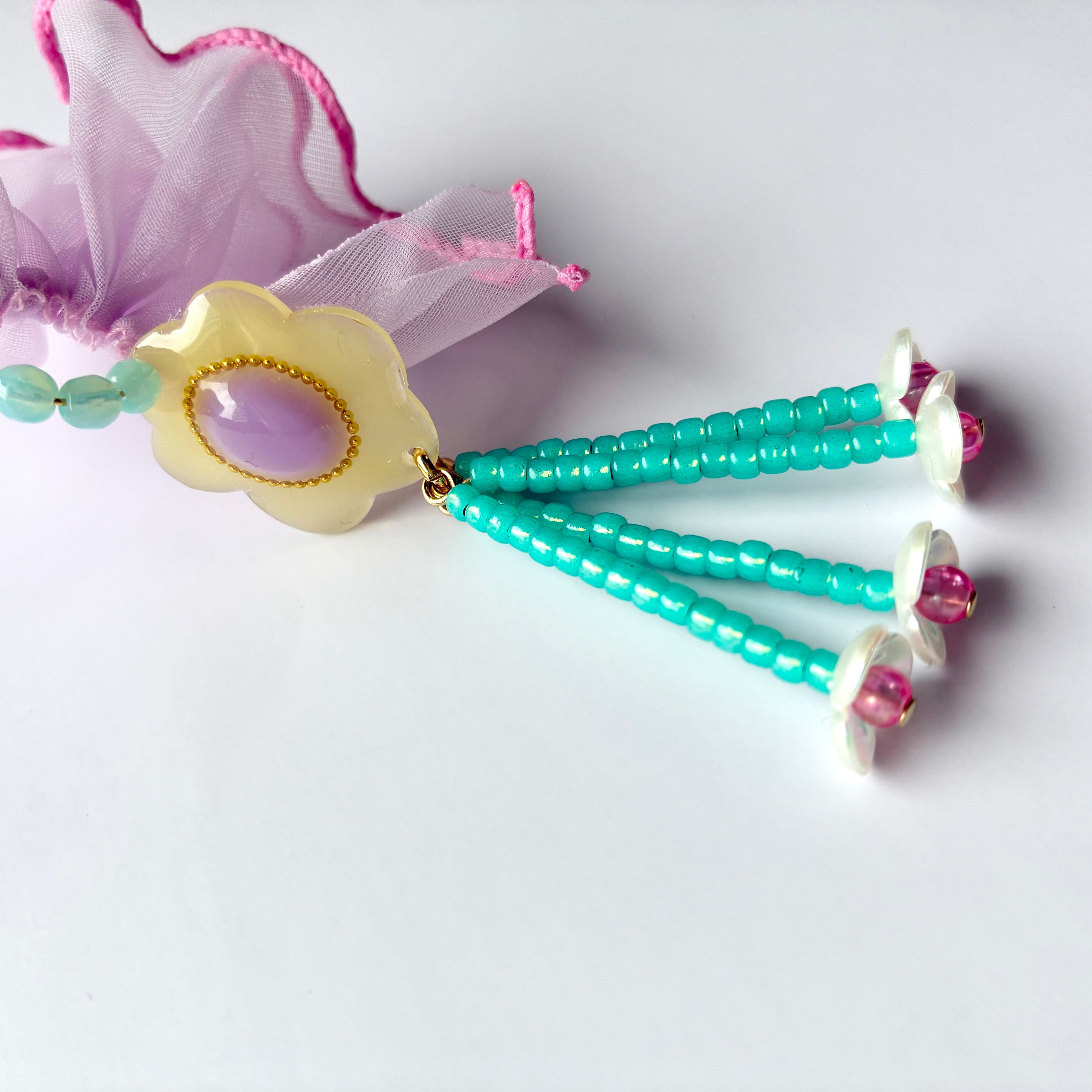 ・肌に触れるビーズ部分の一部をレジンコーティングしてあります
